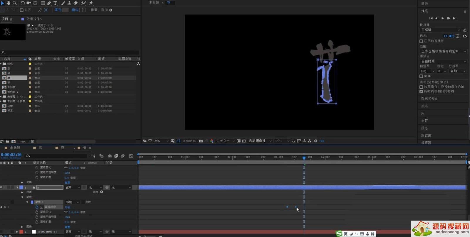 在进行【K帧】的过程中,要注意“蒙版”的移动位置,需要制作出手绘的效果,所以根据“正常手写”的方式进行调整。