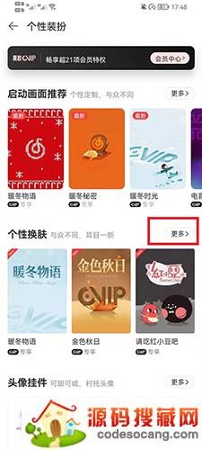 3.点击个性换肤栏目中的【更多】进入到更多皮肤界面中