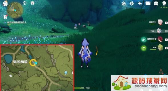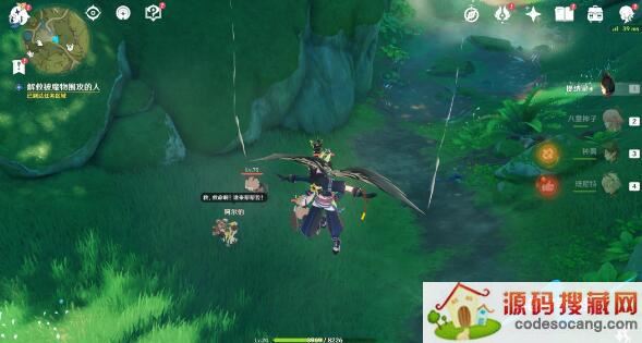1、我们来到图示位置会自动接取任务,解救被魔物围攻的人。