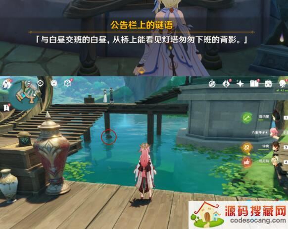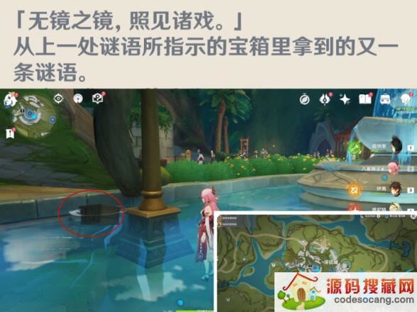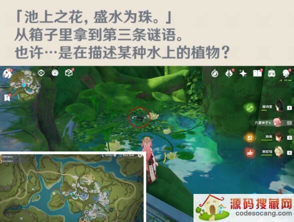 4、谜题四:从传送锚点下到下层水池(寂静园)获得摩拉盒子以及第五条谜语。