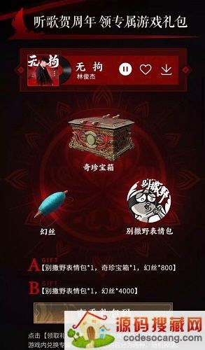 2、然后往下拉,拉到下面“听歌贺周年 领专属游戏礼包”。