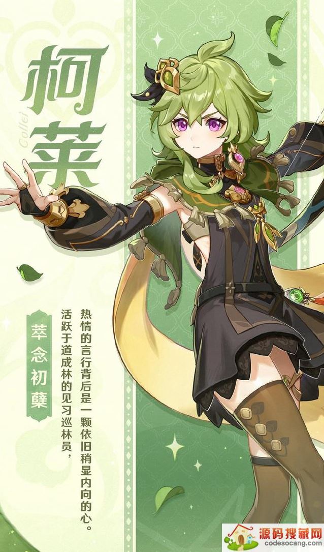 原神柯莱怎么样?柯莱是四星草元素角色,属于后排持续输出类型的,柯莱可以投掷飞叶轮,对敌人造成草元素伤害,下面小编为大家带来了原神柯莱角色介绍,快来一起了解一下吧。