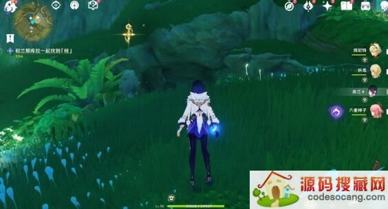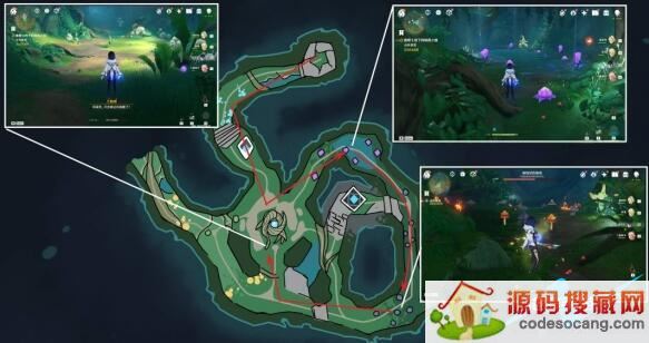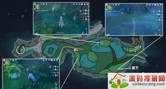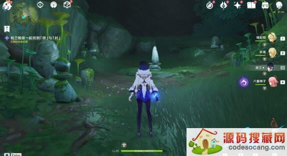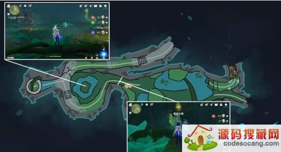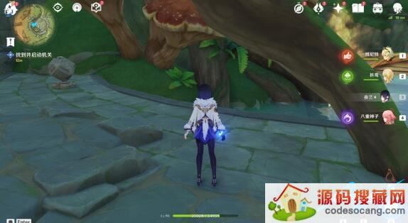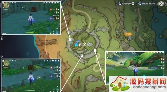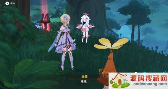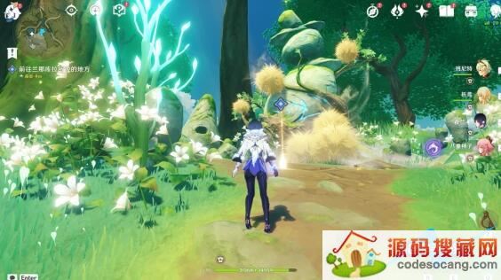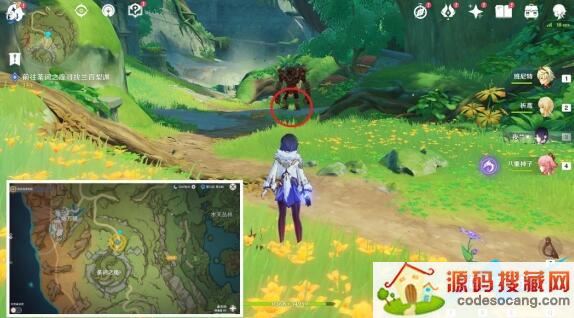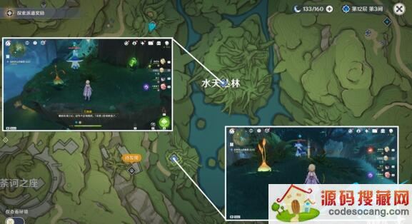 4、击杀两边的蕈兽,都在树上,使用草元素攻击旁边的花蕊,召唤四叶印,快速移动。