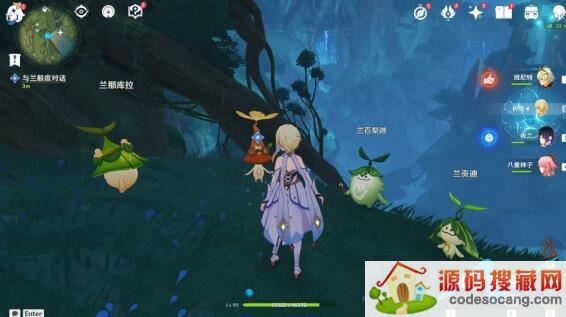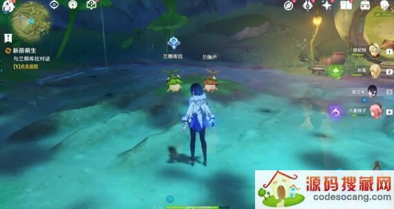 1、来到标记处,在遗迹守卫旁找到“兰百梨伽”。