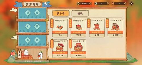 2、充值的前提是需要等级到达10级,十级之后就可以前往萝萝商店去充值购买【萝卜币】
