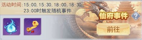 如图所示,上仙们可以看到5个活动时间,每一个时间点都会随机触发一个事件,随机事件就是魔兵、魔将、灵脉、宝矿四个任务中的一个,想要完成全部任务的上仙们记得准时蹲守在仙府。