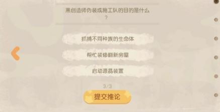 选项:①抓捕不同种族的生命体、②帮忙装修翻新房屋、③启动源晶装置