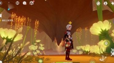 飞到边上,斜上看,还有个引导 可以按T上去,进去里面玩家还需要解密,其实就是对图案了,这点就跟璃月客栈里面对石头的图案是一样,需要达到一定角度才行。