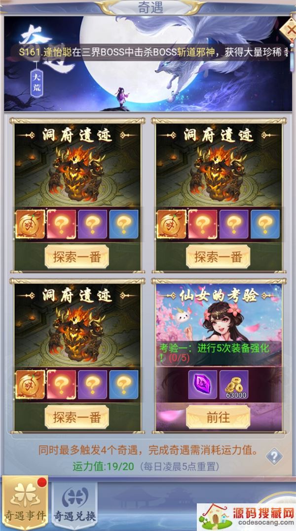 4.完成奇遇事件可获得各种丰厚奖励及奇遇点,奇遇点可在奇遇兑换商店中兑换各种珍稀道具。
