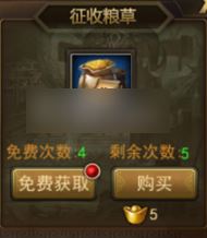 2.每日都可在府库征收粮草。这是获取粮草经济实惠的来源,大家每天可不要忘了哦。当然,也可以直接用元宝购买。