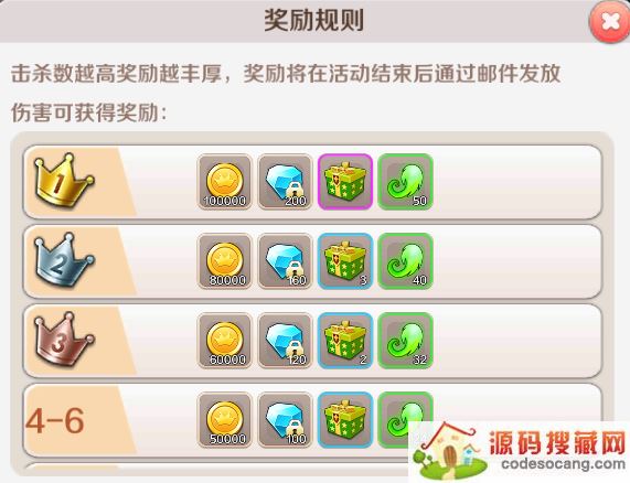 【奖励】——活动时间结束后统计所有玩家的击杀数,并按相关的奖励规则进行发放奖励。