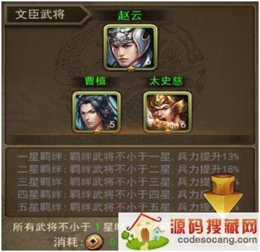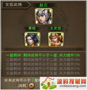 不断升级羁绊,可以获得更高的兵力提升,升级之前可要准备好铜钱哦~