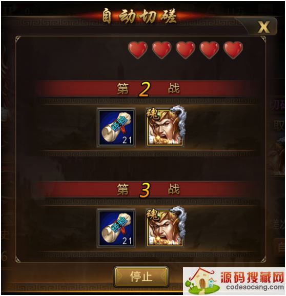自动切磋:点击后,系统默认使用上次切磋的队伍阵容,自动进行连续切磋,此时消耗、奖励、亲密度奖励和守将战力提升与手动切磋完全一样,只是不展示战斗过程,只展示切磋结果。