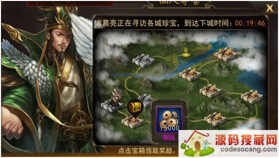 【仙人寻宝】在玩家Lv.8后出现,由名震八方的名士诸葛先生为主公寻访各城珍宝,每座城都有相应的奖励(元宝和铜钱、粮草等),奔波于城与城之间,需消耗时间。下面来看看仙人寻宝详解吧!