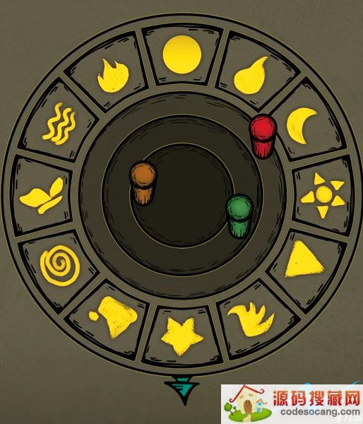绿色坑旁边的密码转盘,地图和墙上的图案结合,楼下的洞里的房间会打开。