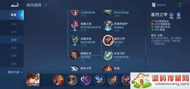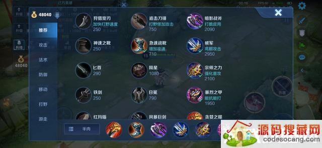 出装推荐这套:红色打野刀 攻速鞋 暗影战斧 破军 宗师之力 爆裂之甲。