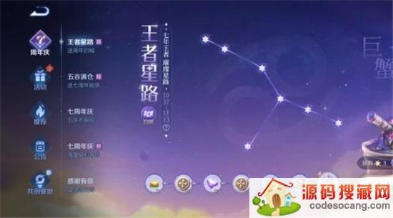 4、王者星路活动时间是2022年10月27日-2022年11月13日,活动常驻入口:活动中心-活动-【王者星路】送周年庆回程,活动奖励:星河入梦回城、表情-送你星星(14天)等。