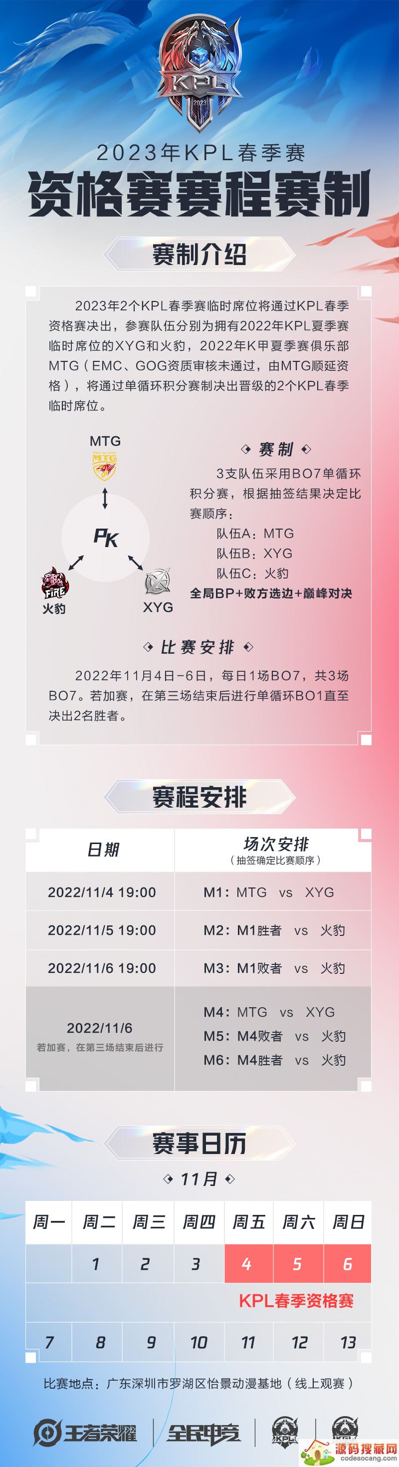 以上就是搜藏游戏小编整理带来的《王者荣耀》2023KPL春季赛资格赛介绍,更多相关游戏攻略,请点击关注源码搜藏网!