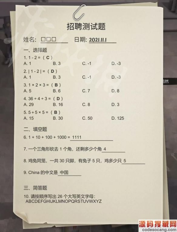 以上就是3DM小编整理带来的《大多数》招聘测试题答案大全介绍。更多精彩内容,请点击关注源码搜藏网更新!