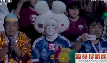 4、实际上是日本观众座位席区域的一位球迷,因为长相比较像岳云鹏,再一个奇特的装扮比较强劲,很有喜感;