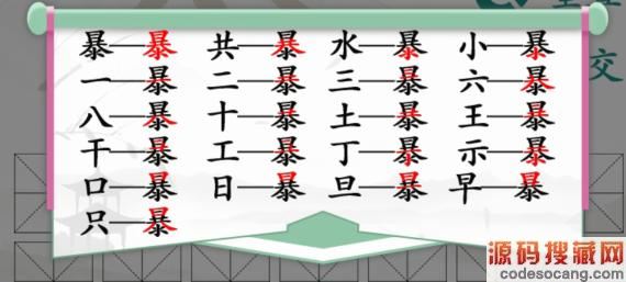 2、暴字上面是一个日,中间是共,下面可以找出水和小字。其中的横分别是一、二、三