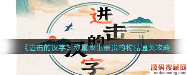 以上就是整理带来的《进击的汉字》称重找出最贵的物品通关攻略,更多关卡攻略,请点击关注源码搜藏网更新!