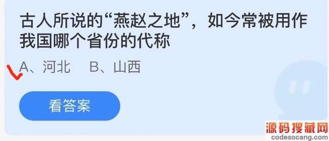以上就是给大家带来的:古人所说的燕赵之地如今常被用作我国哪个省份的代称?支付宝答题11月27日答案2022蚂蚁庄园。想要了解最新问题答案的 小伙伴一定不要错过哦!
