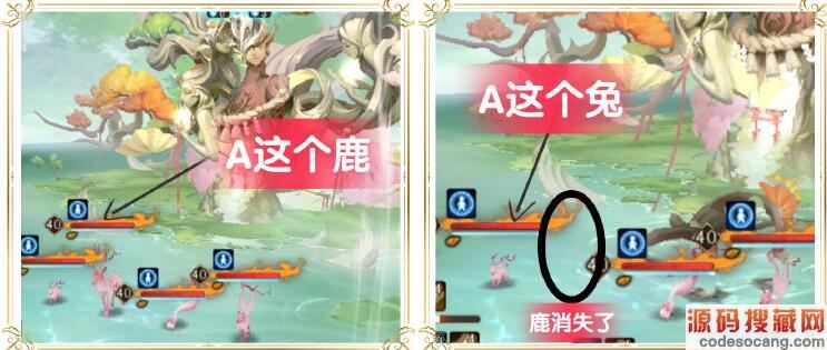 1.千姬第二轮行动时,要A一下第二个动物:鹿灵原理是boss在回合开始前会吞噬护盾量最少的季灵吃掉buff
