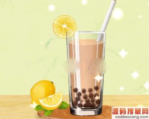 4、最后将调好的奶茶倒进杯子里,放上柠檬片即可成功通关