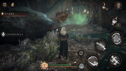 注:建议从楼上书屋跳到石头平台上,往下走一点卡洞穴里,再使用火罐把它们烧死,再去捡东西。