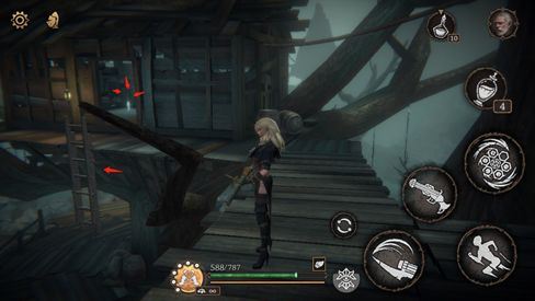 6、然后从楼梯上爬上树屋,上去2楼。左边是主线,右边下面岔路向里探索。