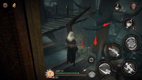 19、然后通过一旁的长梯返回横梁上,去开启角落的木门,以拿取沙漏和钥匙。