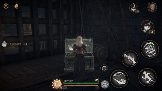 20、出木门后经过吊桥,顺着楼梯下去,去小屋。然后在屋内获得【基塔布房间钥匙】道具,再绕到屋后拾取消耗品【古老的银匙】。