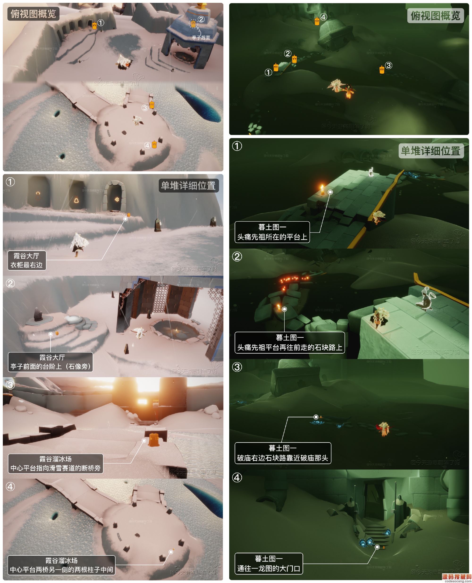 今日季节蜡烛位于霞谷与暮土,小伙伴们可参考下图位置进行寻找: