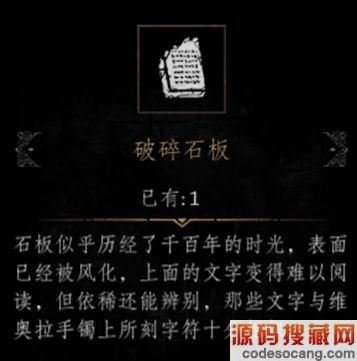 2、然后跟着主线剧情走,经过一颗大树的塔下面的水路,获得【破碎石板】道具。