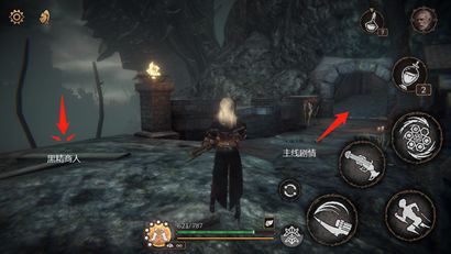 8、我们上坡之后下去(不会走看图),然后一直走到底会看到黑精商人,在他那购买【不存在之靴】。