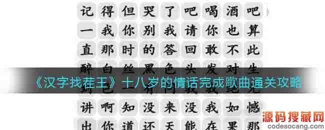 以上就是抖音小游戏汉字找茬王十八岁的情话完成歌曲攻略答案分享,更多关卡攻略,请点击关注《汉字找茬王》全部关卡攻略汇总2022最新!