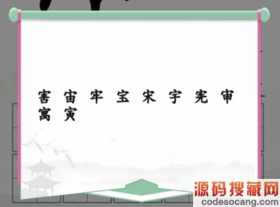 1、拼字挑战-10个有这部分的字分别是:害、宙、牢、宝、宋、宇、宪、审、寓、寅