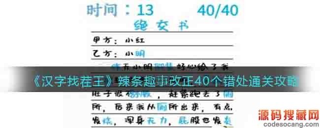 抖音热火文字游戏《汉字找茬王》关卡辣条趣事怎么过关?这是一个找错别字关卡,一共有40个错字,大家要改正40个错处。下面是给大家带来的抖音小游戏《汉字找茬王》辣条趣事改正40个错处通关攻略,不清楚如何过关的小伙伴们一起来看看吧。