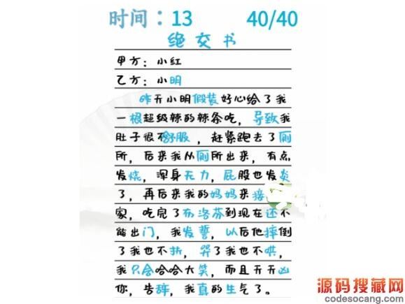 2、关卡中倔脚书应该改为绝交书,小命是小明,炸天是昨天,嫁妆改为假装,一恨改为一根,道长改为导致,不爽改为不舒服,车改为厕,骚改为烧,物理改为无力,破改为屁,发言改为发炎
