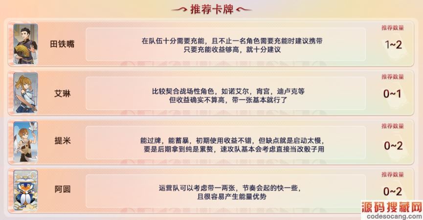 1、大部分人物类卡牌的泛用性并不高,而有些的卡牌在大世界的NPC对战中能够直接获得。