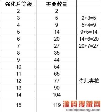 5、完成任务强化到15级,需要665个强化血统的材料。强化血统用的材料数量从升到2级到6级分别是2、5、9、14、20、27、35、44,本级强化所需数量+下一级的等级数=下一级强化所需的材料数量。我也不知道有没有用,但我先记在这里,万一有哪一名小伙伴和我一样想一下子强化血脉到某个等级,但又担心材料不够,这样就可以先算一下。