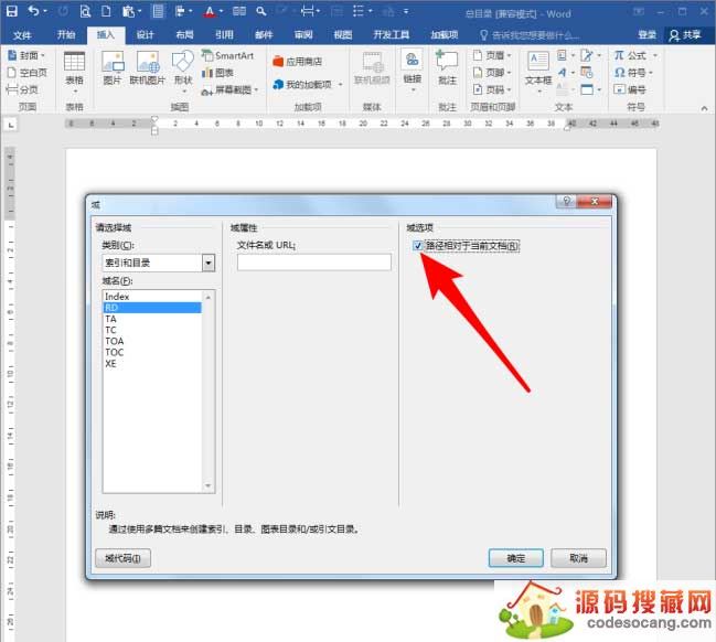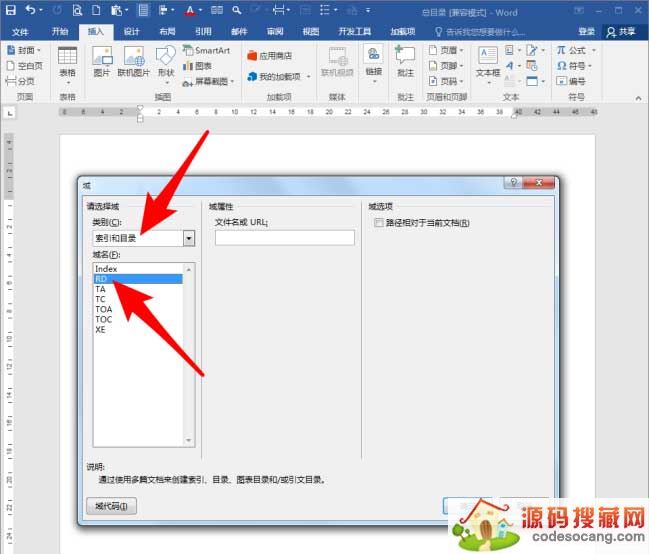 在打开的【域】设置窗口中,类别选择【索引和目录】,再选择其中的RD域。