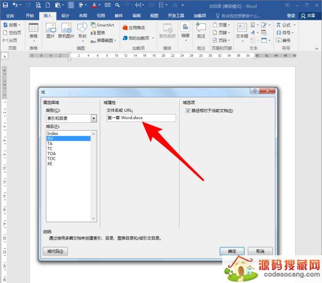 然后在【文件名或URL】中,输入第一章子文档的文件名,以及文件扩展名,即【第一章 Word.docx】。