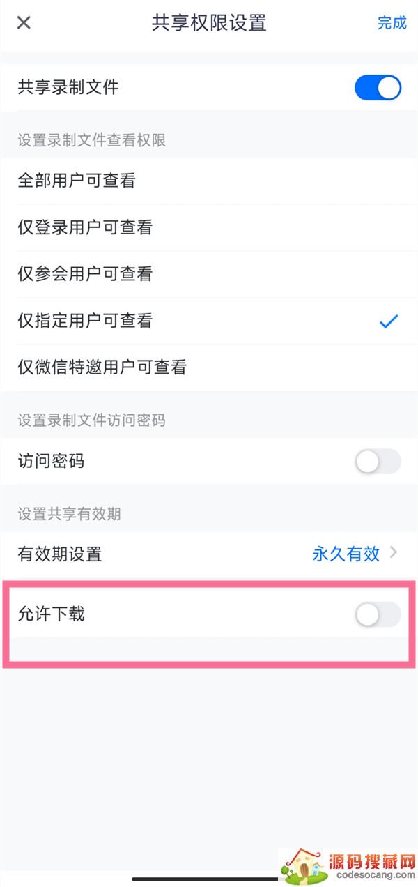 注:下载云录制视频,需要会议主持人开启了下载权限,且自己拥有录制文件查看权限。