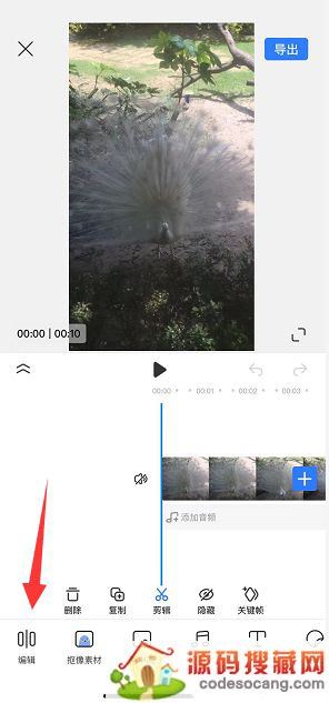 2、进入相机上传视频后,在剪辑页面左下角点开编辑