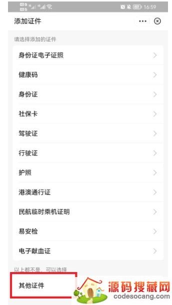 4、在添加证件界面中,点击最下放的【其他证件】去进行添加;