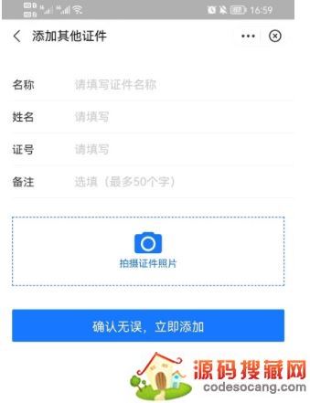 5、最后只需要在证件详细添加界面中,输入证件的详情信息还有拍照就可以完成添加。