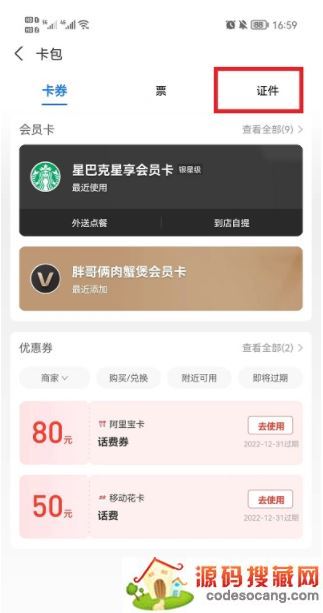 2、随后在卡包界面中,点击其中的【证件】进入到证件添加列表中;