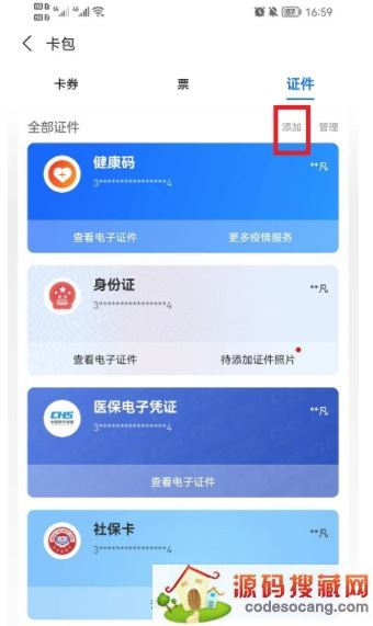 3、在证件列表中,点击上方的小字,其中有一个【添加】的选项,点击进入到添加证件界面;